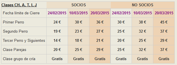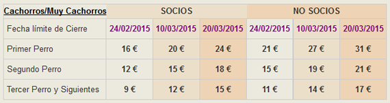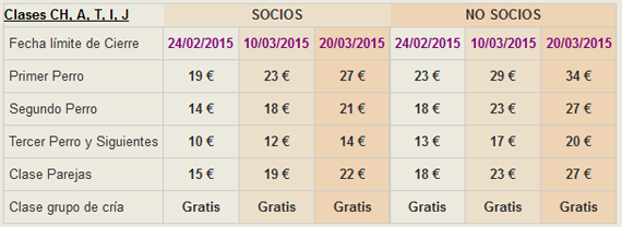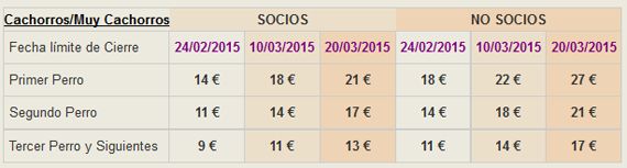Razas Españolas y Veteranos (excepto Cachorros) 50% Tarifa anterior (en cuenta independiente)