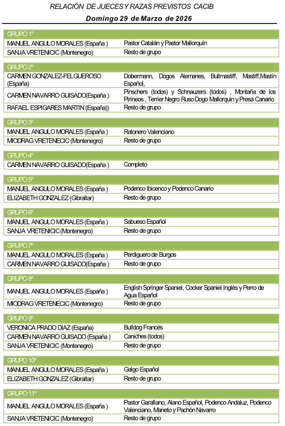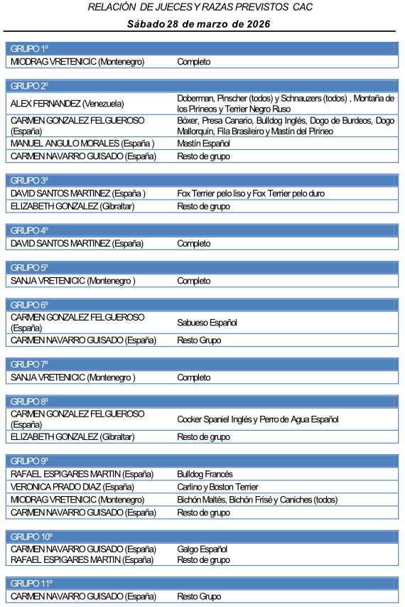 - Juicios a partir de las 09:30 con arreglo a los horarios de cada raza. Todos los participantes deberán estar dispuestos a la entrada del ring media hora antes de ser juzgados.