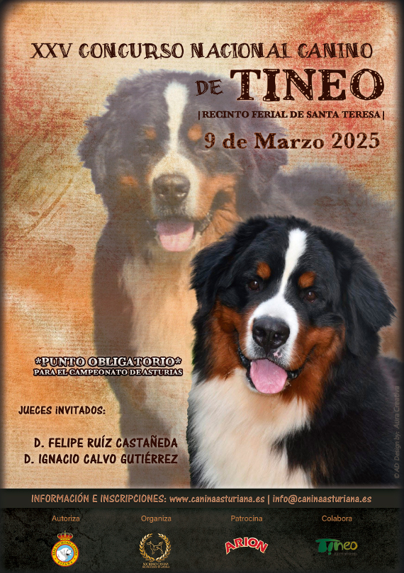 El Ayuntamiento de Tineo y la Sociedad Canina del Principado de Asturias organizan el próximo día 9 de marzo de 2025 un Concurso Nacional Canino, puntuable para el Campeonato de Asturias 2025, en el marco de la XXX Feria del Perro de Tineo.