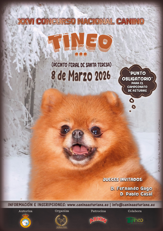 El Ayuntamiento de Tineo y la Sociedad Canina del Principado de Asturias organizan el próximo día 8 de marzo de 2026 un Concurso Nacional Canino, puntuable para el Campeonato de Asturias 2026, en el marco de la XXXI Feria del Perro de Tineo.